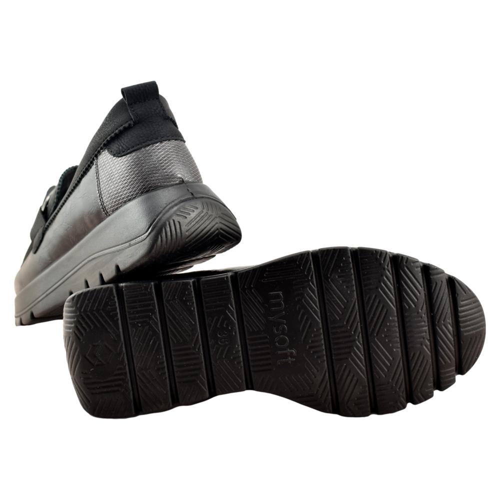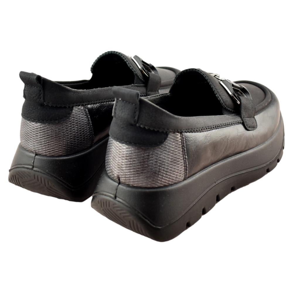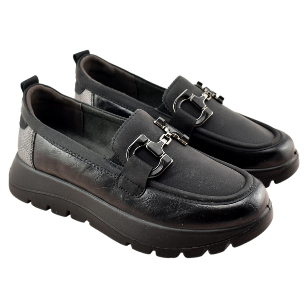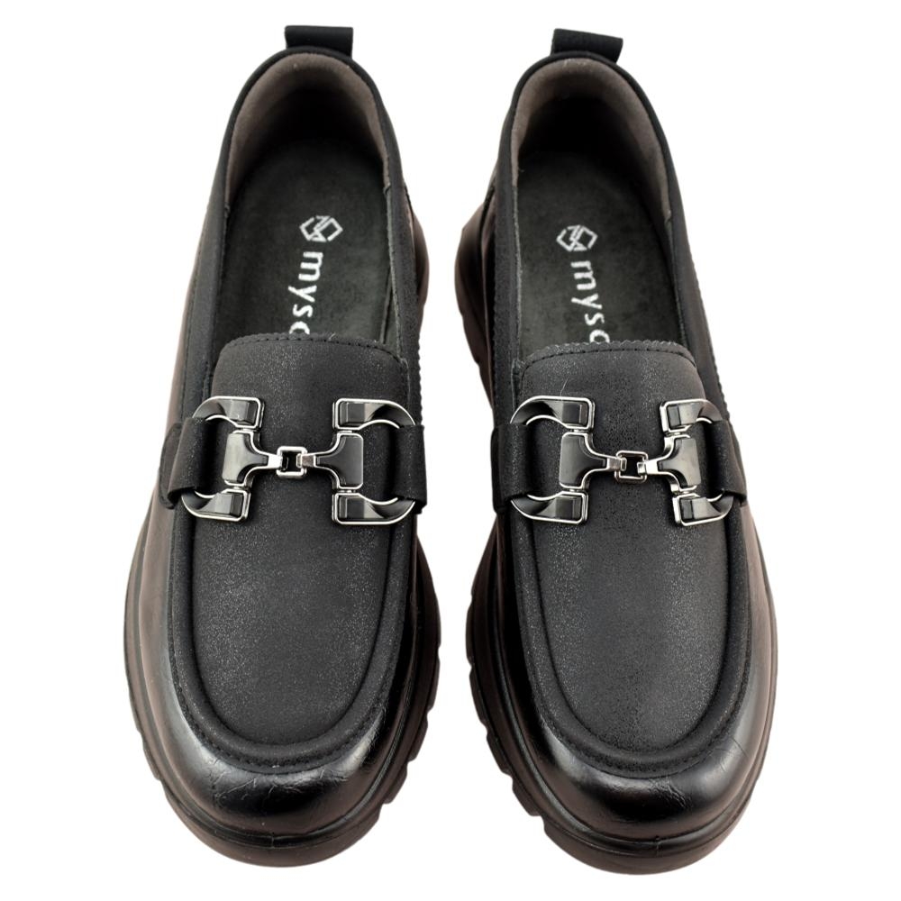 Mocasín de plataforma que incorpora plantilla memory foam extraíble, que aporta una gran comodidad y confort a cada paso.. Adorno delantero en forma de estribo al tono del piso. Piso flexible y antideslizante de 4,5cm de altura en el talón.