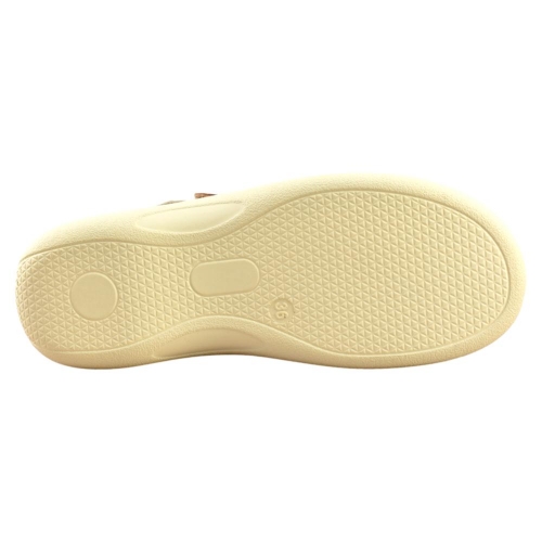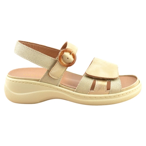 Sandalia cómoda y funcional diseñada para incorporar plantilla ortopédica. Presenta tiras en tonos neutros con acabado combinado y cierre ajustable que facilita un calce seguro. Su diseño amplio permite retirar la plantilla original y adaptar una personalizada, ofreciendo mayor confort y soporte en el día a día. Ideal para quienes buscan estilo sin renunciar al bienestar.