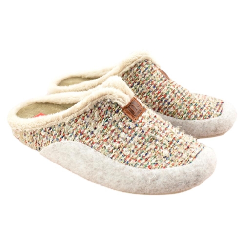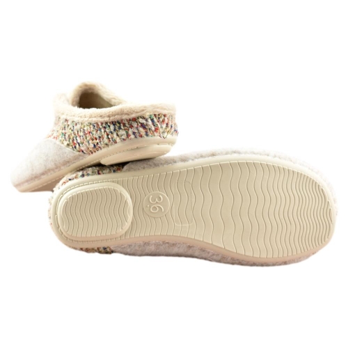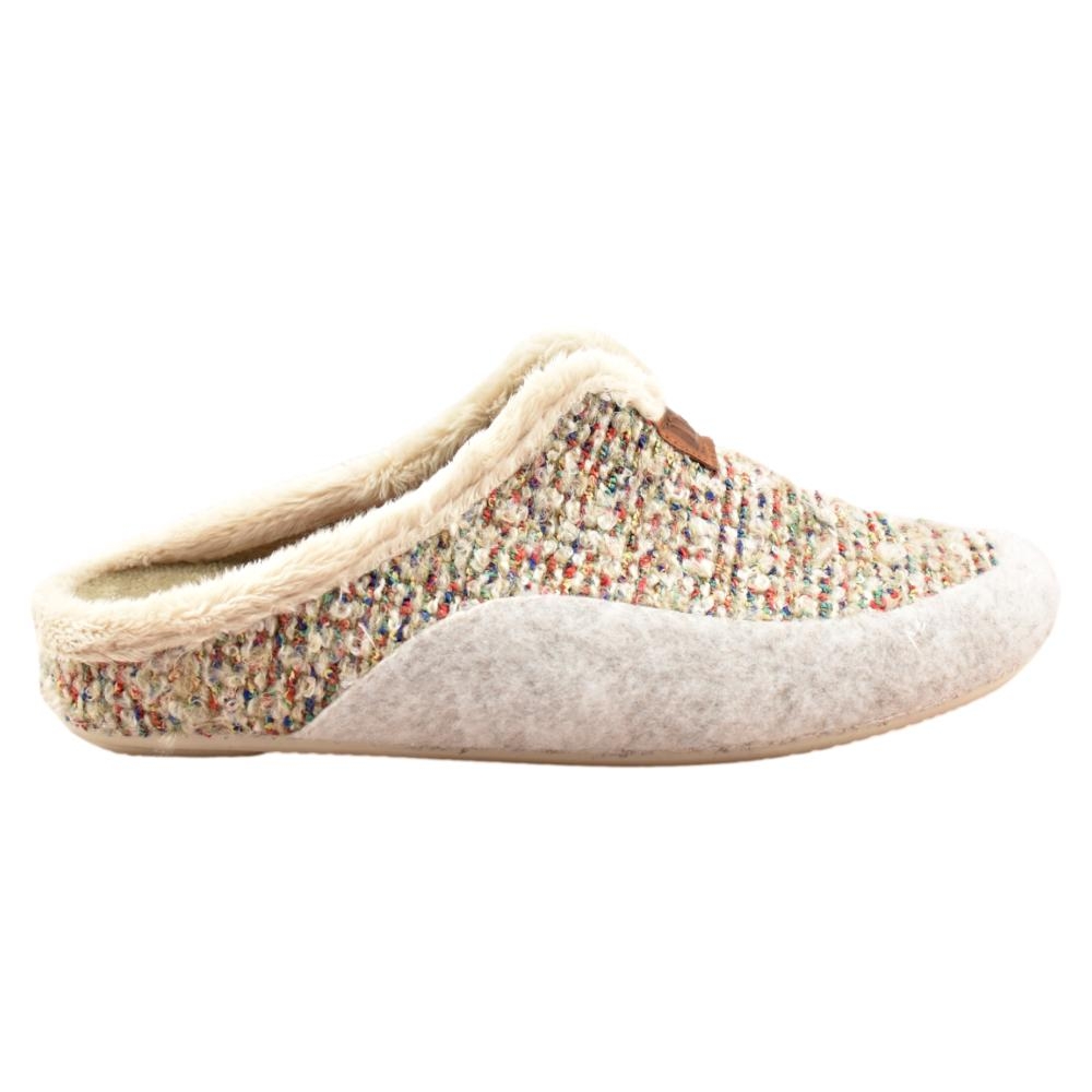 FABRICADO EN ESPAÑA. Zapatillas de casa en tonos beige. Interior y plantilla en tejido muy suave, que aporta calidez y bienestar en los fríos días de invierno. Piso de goma flexible.
