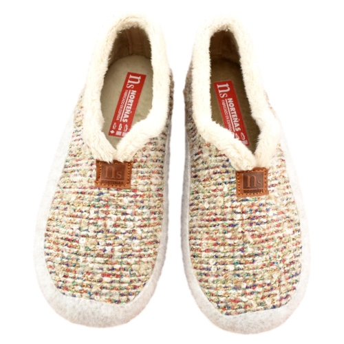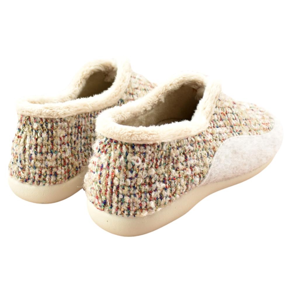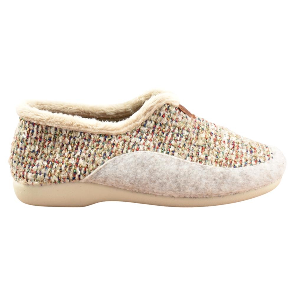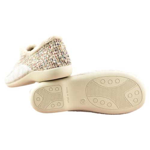 FABRICADO EN ESPAÑA. Zapatillas de casa en tonos beige. Interior y plantilla en tejido muy suave, que aporta calidez y bienestar en los fríos días de invierno. Piso de goma flexible.