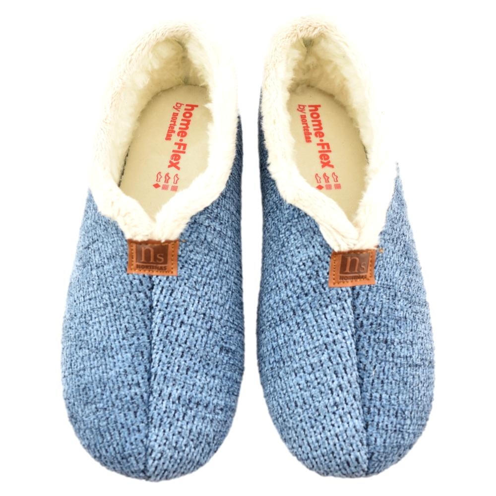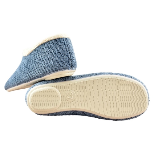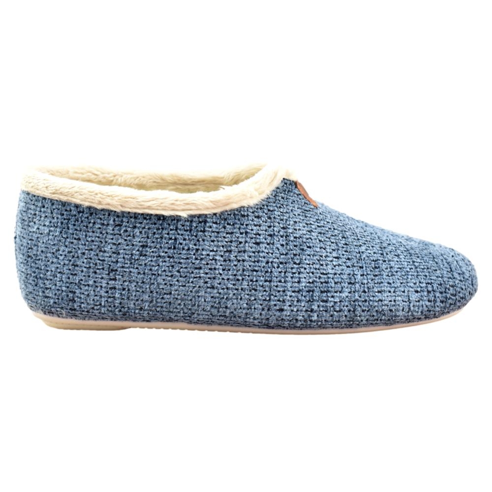 FABRICADO EN ESPAÑA. Zapatillas de casa fabricada en tejido suave y cálido color jeans. Interior y plantilla forradas de pelo, que aporta calidez y bienestar en los fríos días de invierno. Piso de goma flexible.