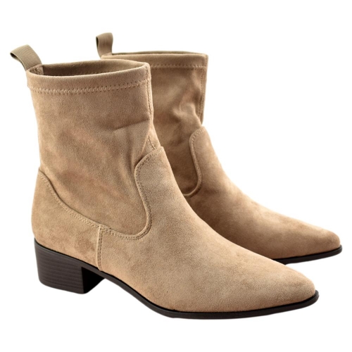 Botín fabricado en material elástico adaptable. Piso de goma flexible y tacón de 4cm. Elegante y cómodo modelo que podrás combinar con cualquiera de tus looks.