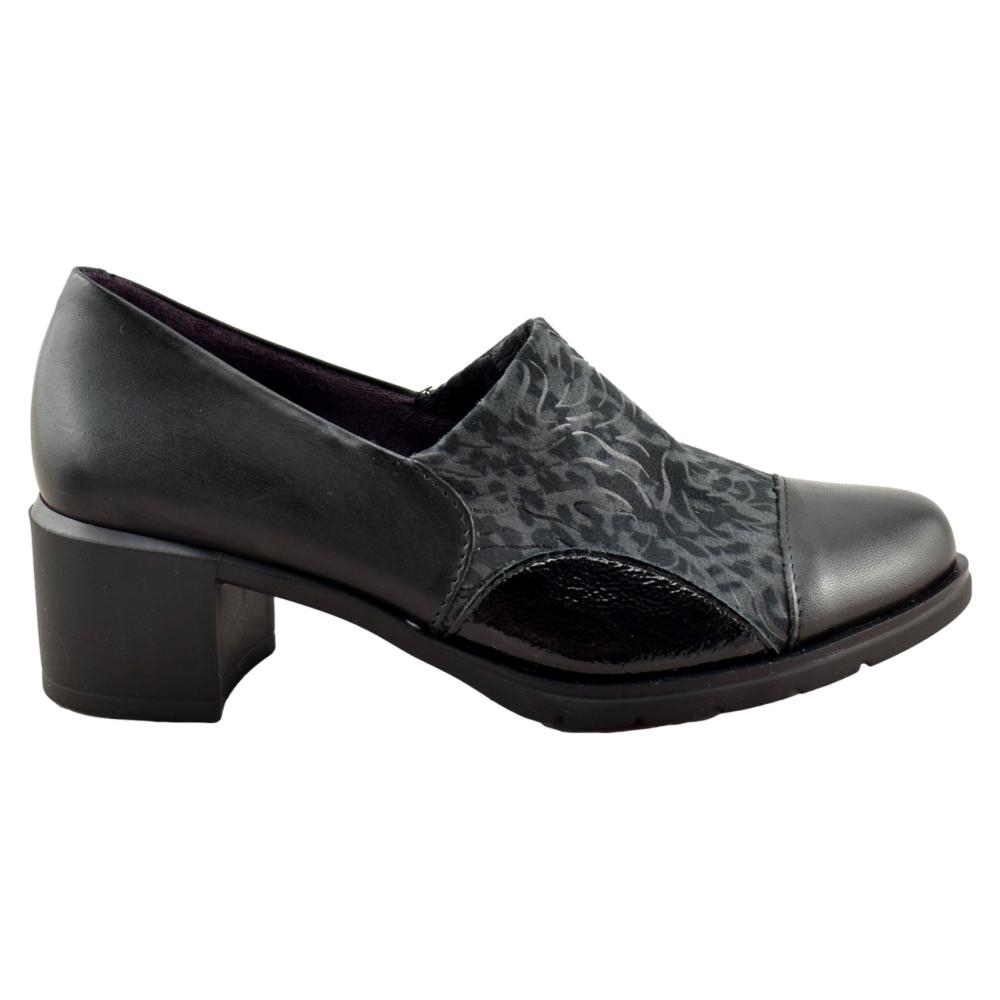 FABRICADO EN ESPAÑA. Mocasín para mujer, realizado en piel combinada con licra adaptable en el empeine. El forro y la plantilla son térmicos y súper absorbentes, combaten la aparición de olores y proporcionan una agradable sensación de confort y bienestar. Suela de goma antideslizante. Medidas: Tacón 5.5 cm