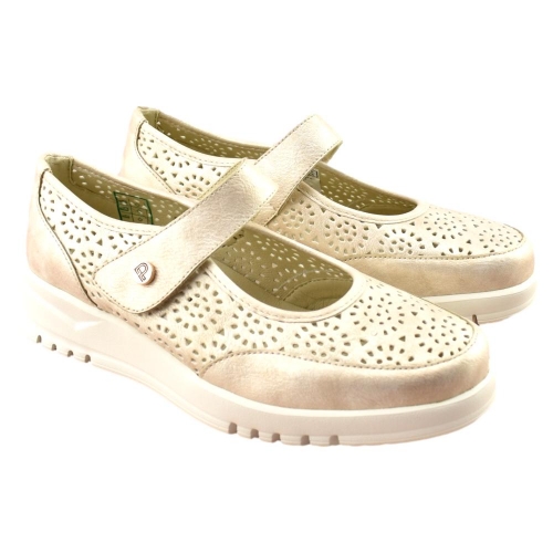 Zapato de piel tipo mercedes con plantilla acolchada y extraíble que permite cambiarla por una ortopédica si es necesario. Su cierre de velcro se adapta a la anchura de cualquier pie. Destaca la ligereza y flexibilidad de su piso, con cuña de aprox. 2,5 cm. Zapato que aporta confort y máxima comodidad.