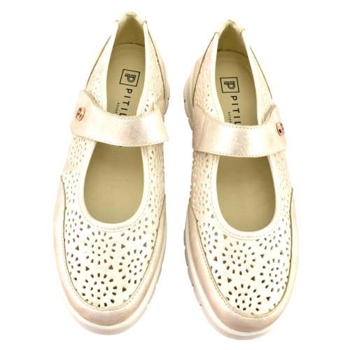 Zapato tipo mercedes con plantilla acolchada y extraíble que permite cambiarla por una ortopédica si es necesario. Su cierre adhesivo se adapta a la anchura de cualquier pie. Destaca la ligereza y flexibilidad de su piso, con cuña de aprox. 2,5 cm. Zapato que aporta confort y máxima comodidad.