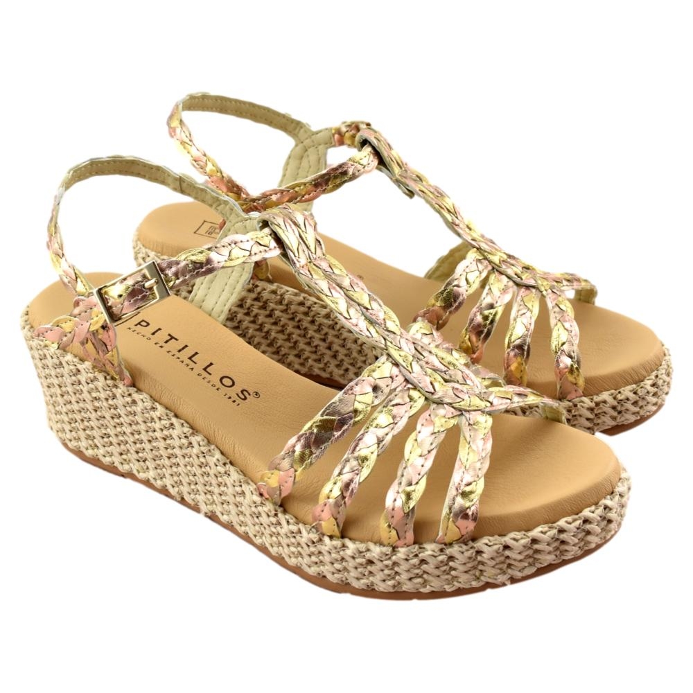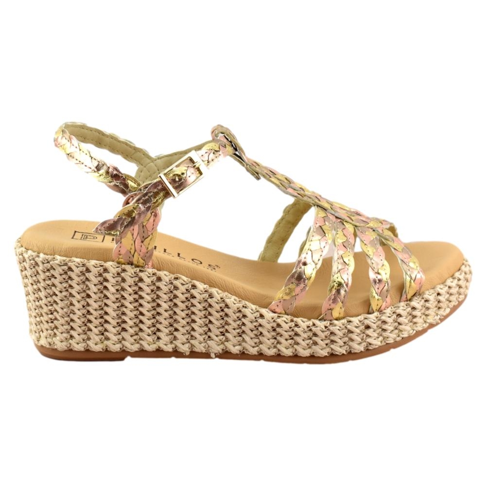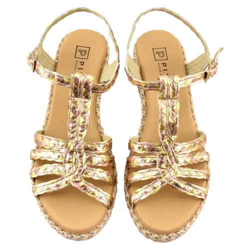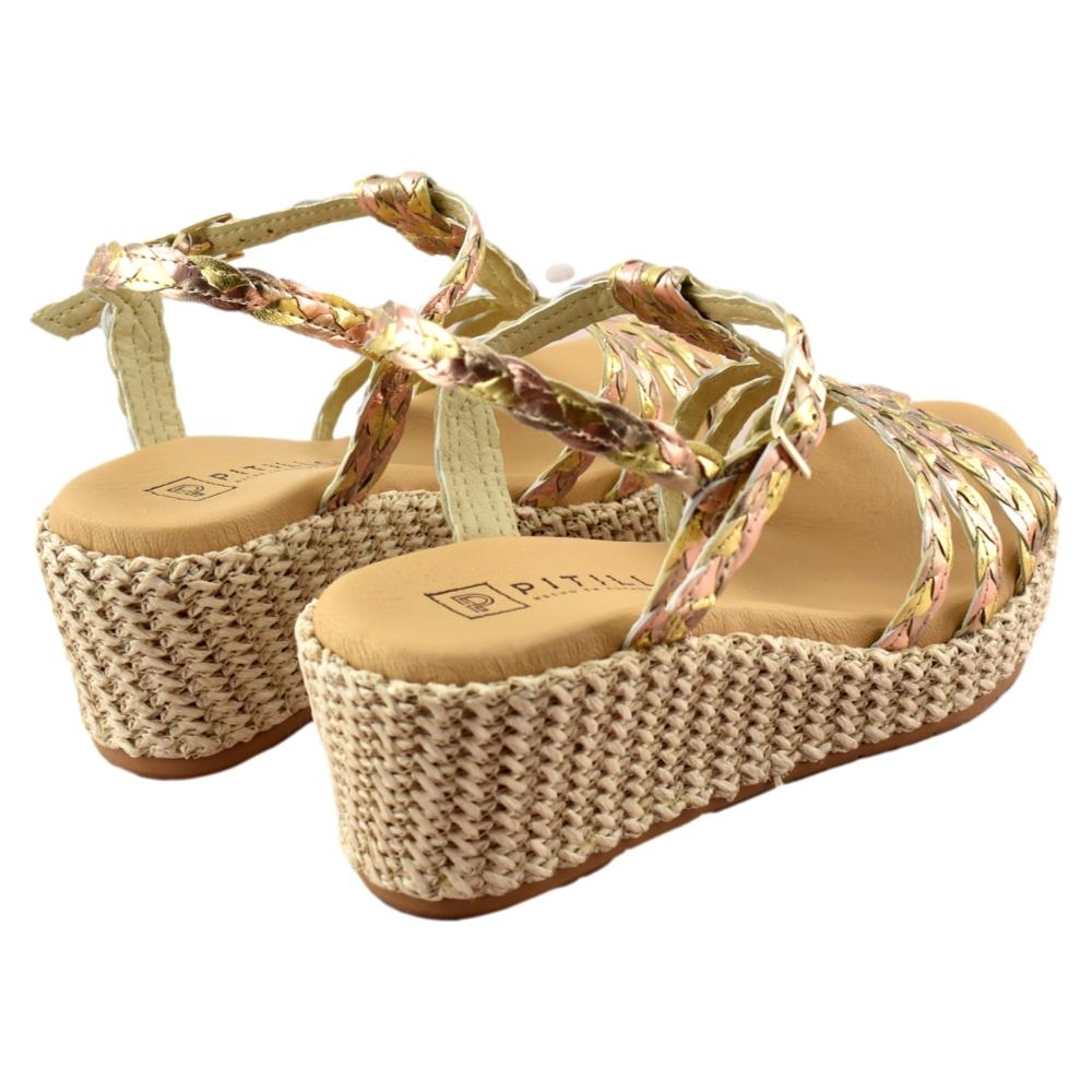 Composición con Trenzas en tonos dorados para formar una sandalia muy veraniega, con un contraste de colores alegre y divertido que vestirá tus pies de juventud.