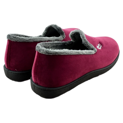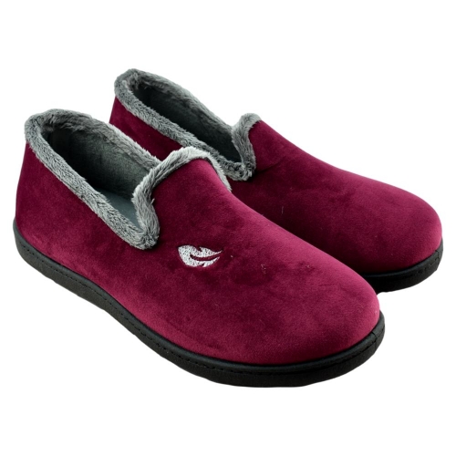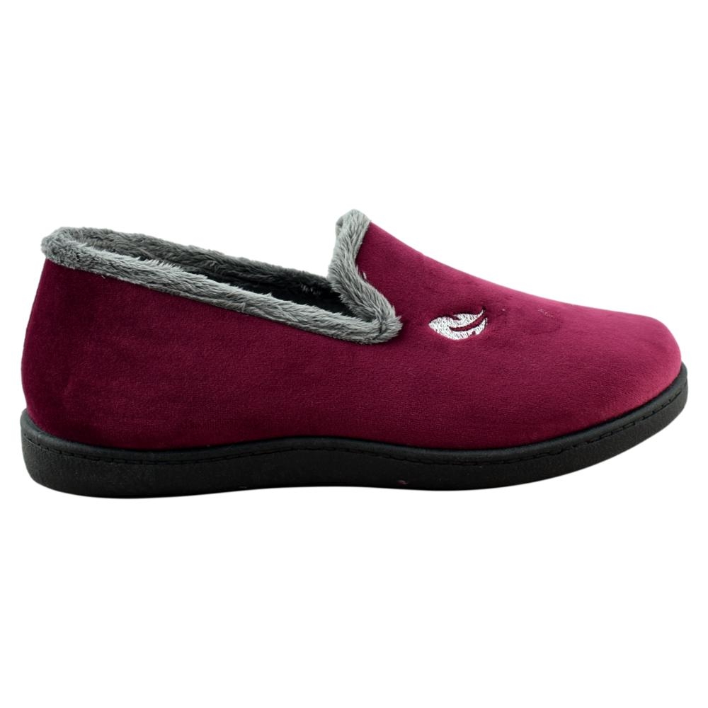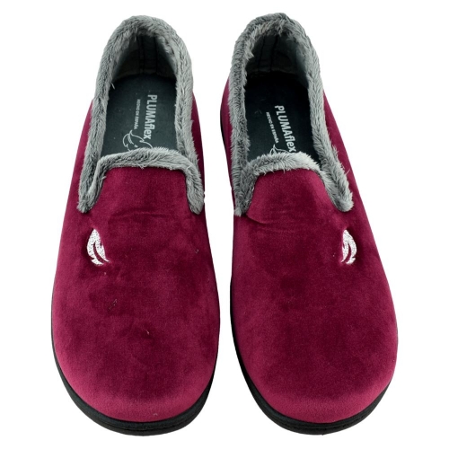 FABRICADO EN ESPAÑA. Zapatilla de estar por casa muy cómoda, fabricada con tejido y forro suave y cálido de color burdeos. Lo mejor es su plantilla extraíble PLUMAflex de espuma de PU, transpirable de alta recuperación, que gracias a su efecto memoria se adapta completamente a la anatomía del pie, ofreciendo un confort extra al caminar y aumentando la sensación de descanso, comodidad y bienestar.
