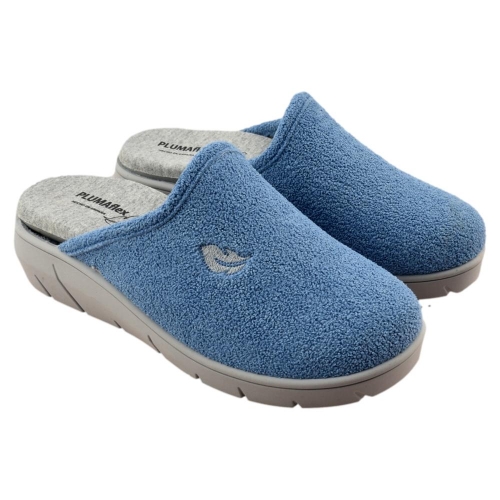 FABRICADO EN ESPAÑA. Zapatillas de casa destalonadas con puntera cerrada, fabricada en tejido de rizo muy suave y transpirable. Destaca su plantilla extraíble PLUMAflex de espuma de PU, transpirable de alta recuperación, que gracias a su efecto memoria se adapta completamente a la anatomía del pie, ofreciendo un confort extra al caminar y aumentando la sensación de descanso, comodidad y bienestar.