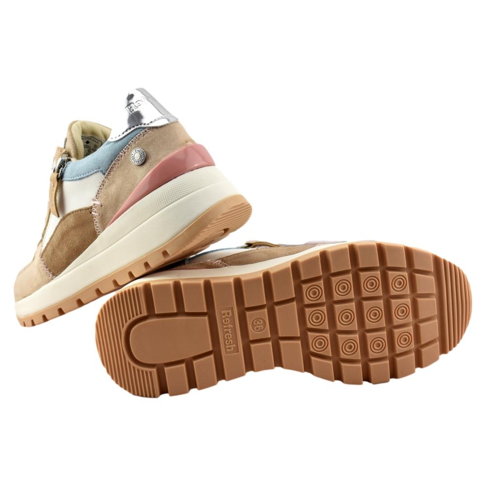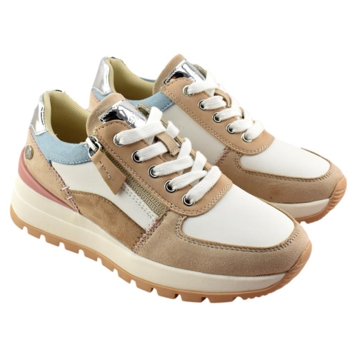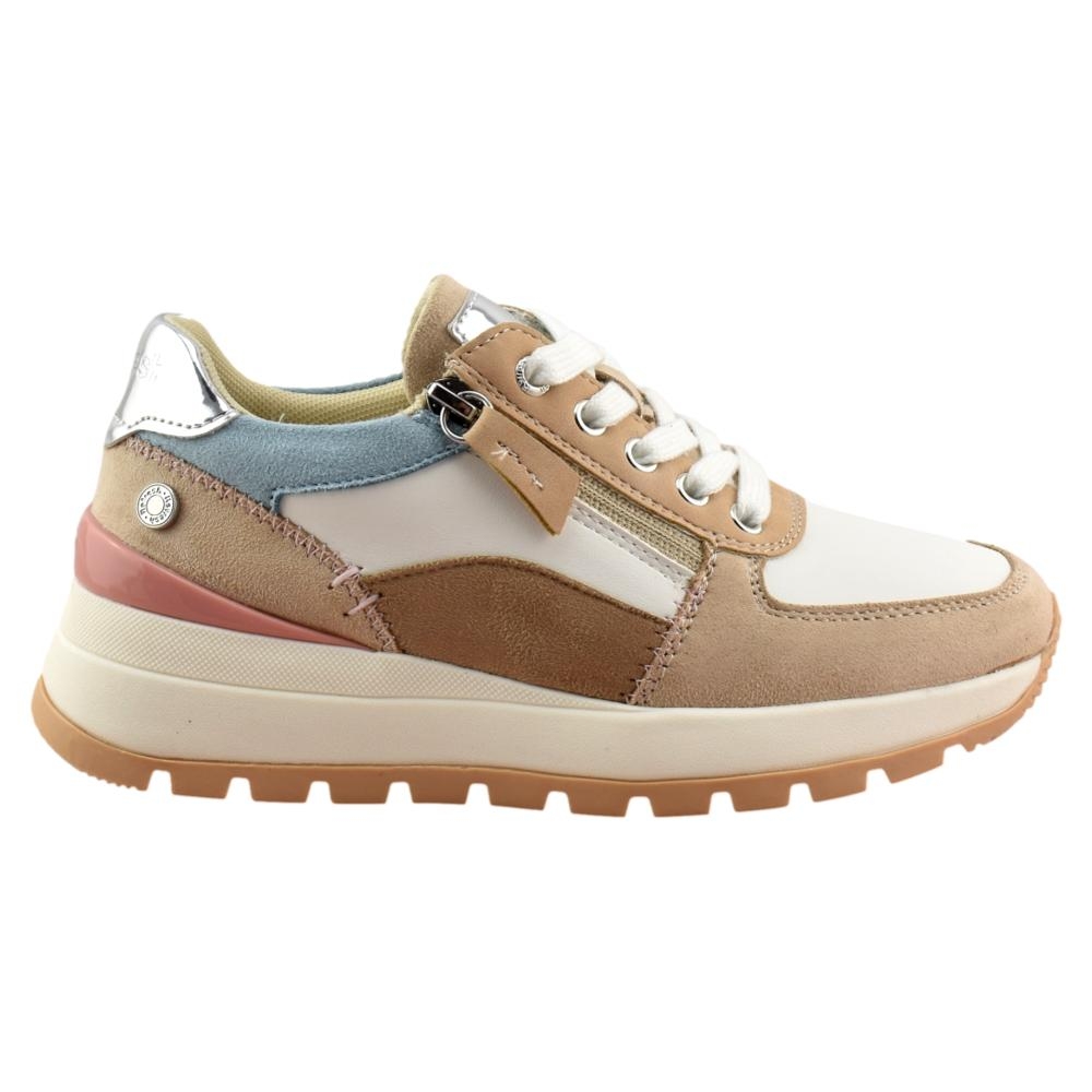 Zapatilla deportiva de mujer, estilo casual. Cierre de cordones y cremallera. Sneakers fabricados en piel sintética suave. Plantilla acolchad y extraíble. Zapatilla básica y versátil para crear tus mejores looks. Color beige-multi. Certificado vegano.