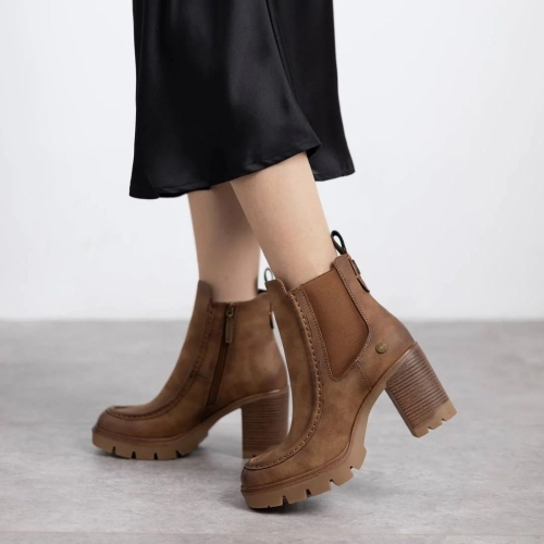 Botín de mujer, de la marca Refresh. Fabricado en material que imita a la piel. Cierre mediante cremallera interior. Tirador trasero para facilitar la puesta. Botín tipo chelsea con tacón de 11 cm. Suela de goma antideslizante. Plantilla extraíble. Este modelo ha obtenido el certificado vegano por la organización mundial PETA (Organización de los derechos de los animales).