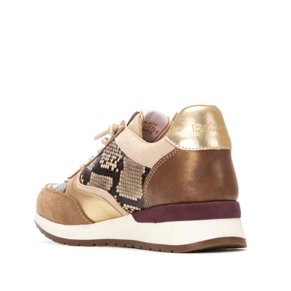 Zapatilla de mujer, de la marca Refresh. Fabricada en material que imita a la piel. Una zapatilla con una combinación de colores ideal para el día a día. Con suela de goma antideslizante. Con plantilla extraíble. Este modelo ha obtenido el certificado vegano por la organización mundial PETA (Organización de los derechos de los animales).