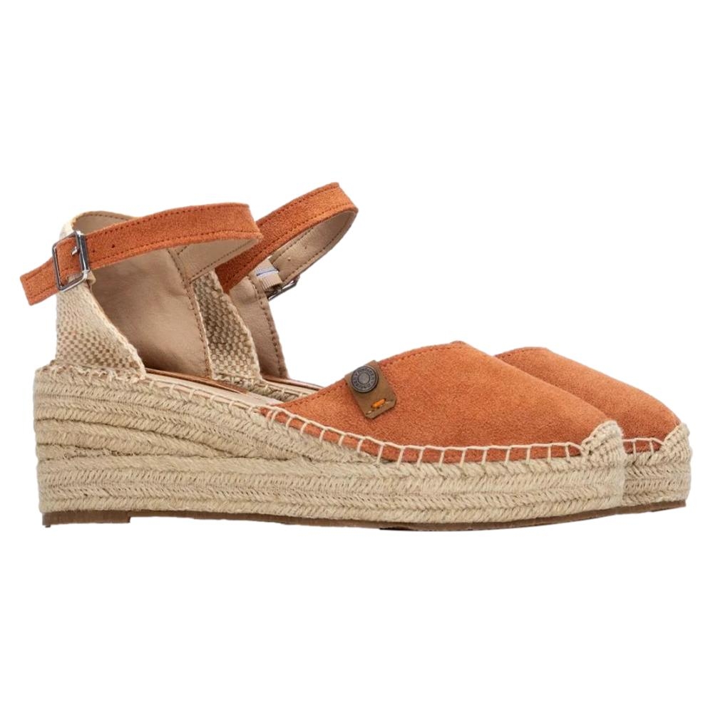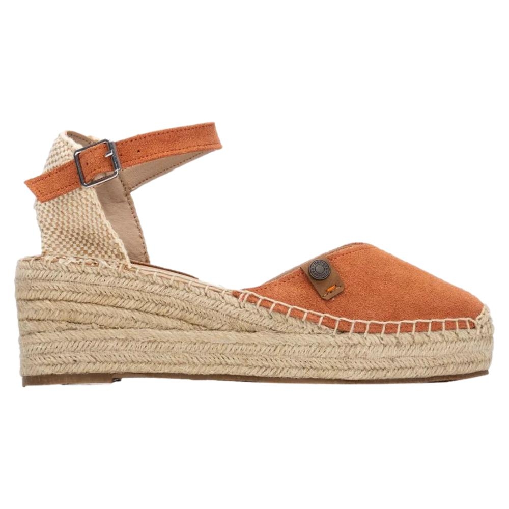 Zapato tipo esparteña de mujer, de la marca Refresh. Fabricado en serraje. Pulsera con hebilla metalizada. Cuña de yute con suela de goma. Un zapato perfecto para combinar con tus mejores looks de la temporada. Altura de cuña 6cm.
