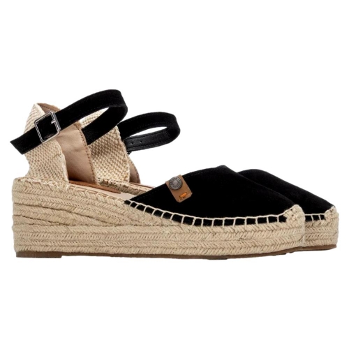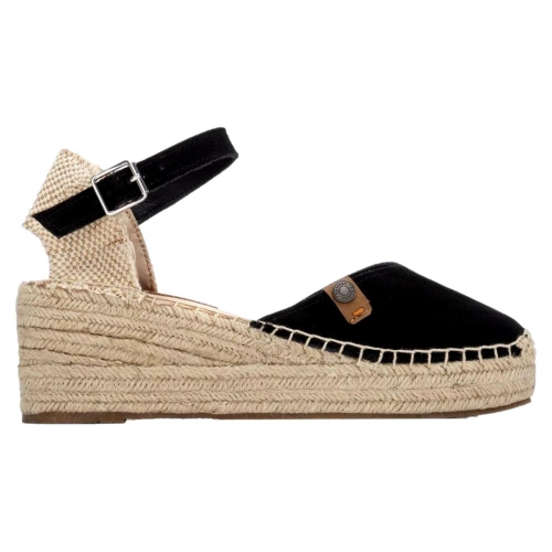 Zapato tipo esparteña de mujer, de la marca Refresh. Fabricado en serraje. Pulsera con hebilla metalizada. Cuña de yute con suela de goma. Un zapato perfecto para combinar con tus mejores looks de la temporada. Altura de cuña 6cm.