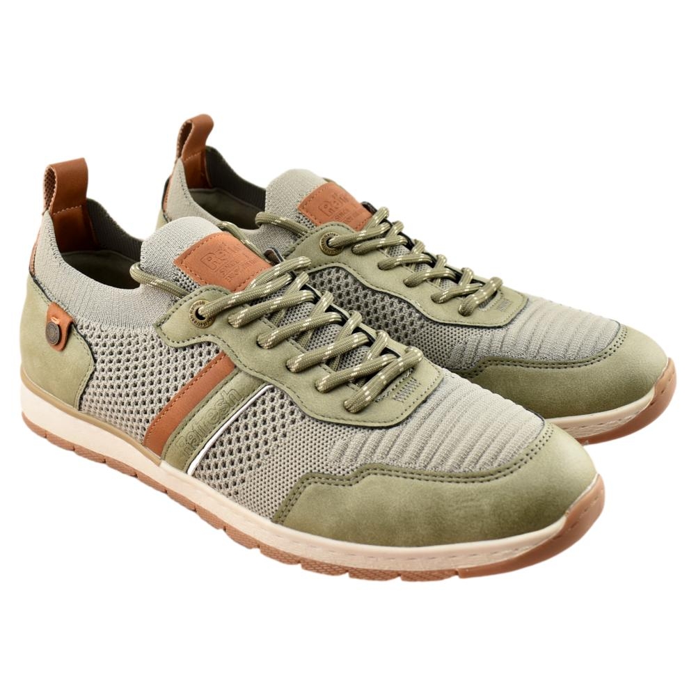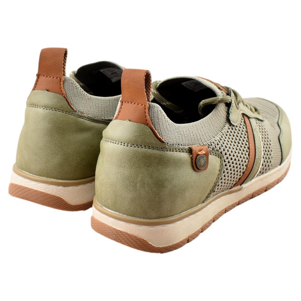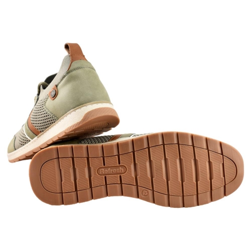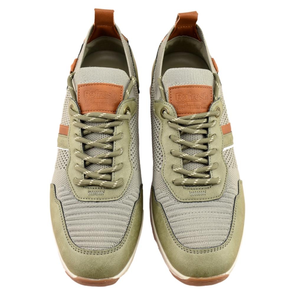 Zapato color kaki de hombre, de la marca Refresh. Fabricado en material textil. Cierre mediante cordones ajustables. Suela flexible y antideslizante. Un modelo básico de entretiempo, combinable con todos tus looks, imprescindible para la primavera. Este modelo ha obtenido el certificado vegano por la organización mundial PETA (Organización de los derechos de los animales).