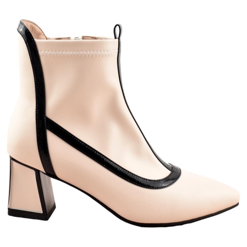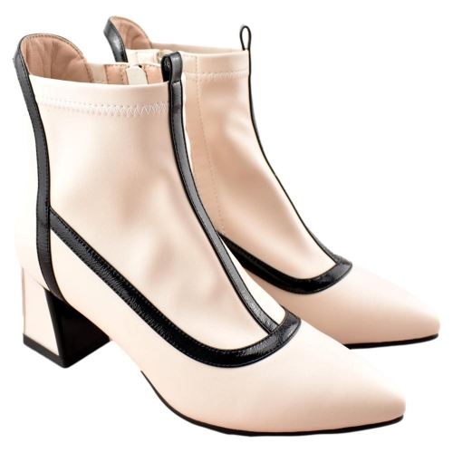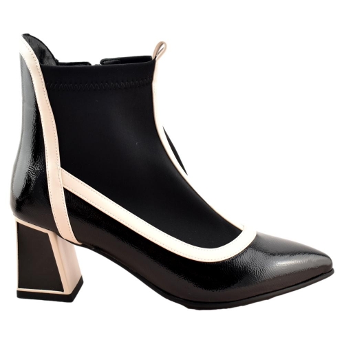 ¡Disfruta este invierno del estilo único de estos botines de tacón cuadrado! Estos botines te proporcionarán un look original con sus tiras bicolor en negro hielo.