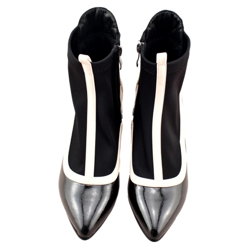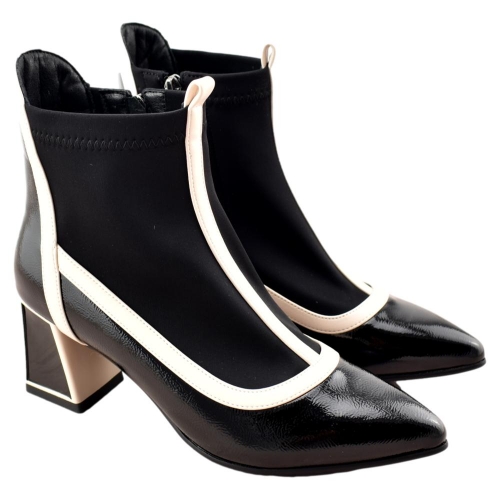 ¡Disfruta este invierno del estilo único de estos botines de tacón cuadrado! Estos botines te proporcionarán un look original con sus tiras bicolor en negro hielo.