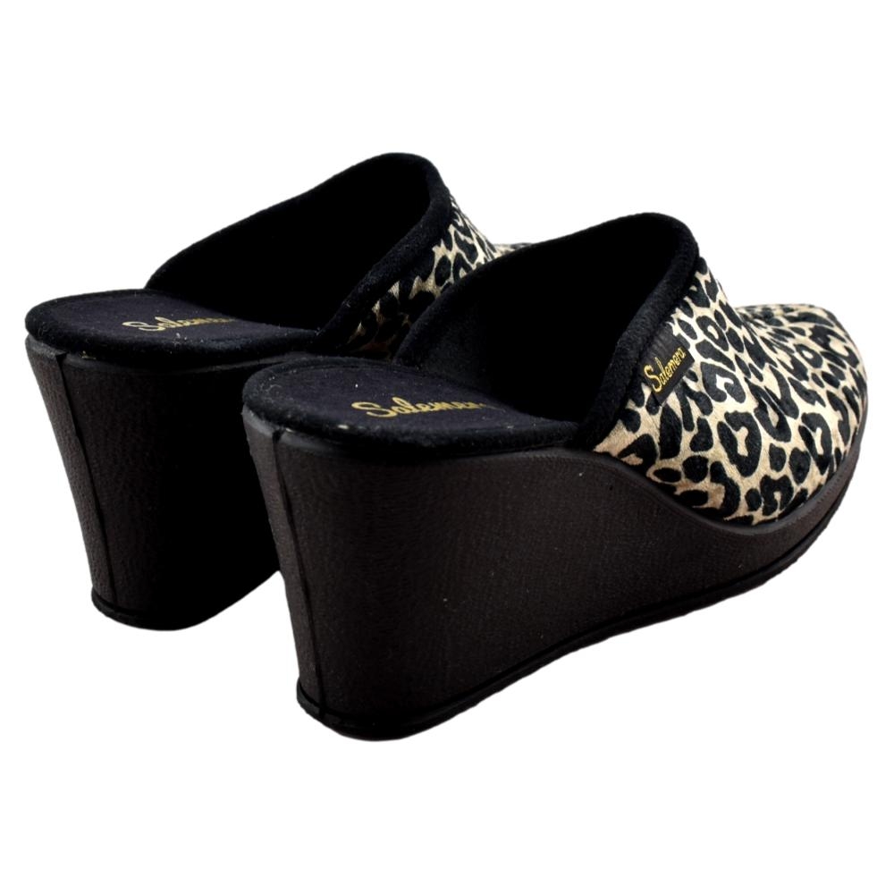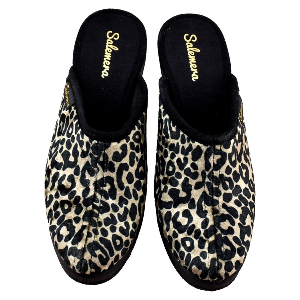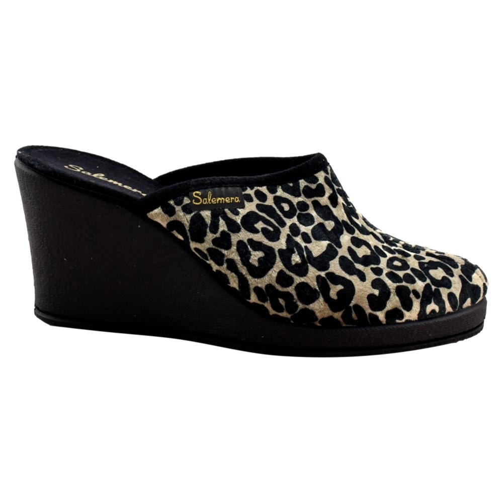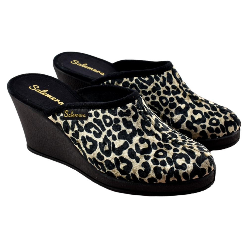 FABRICADO EN ESPAÑA. Zapatillas de casa estampadas con motivos animal print. Cuña de caucho de 7cm de altura. Fabricada en materiales de 1ª calidad, su tejido suave y cálido aporta máximo confort, y su piso flexible máxima comodidad en cada pisada.