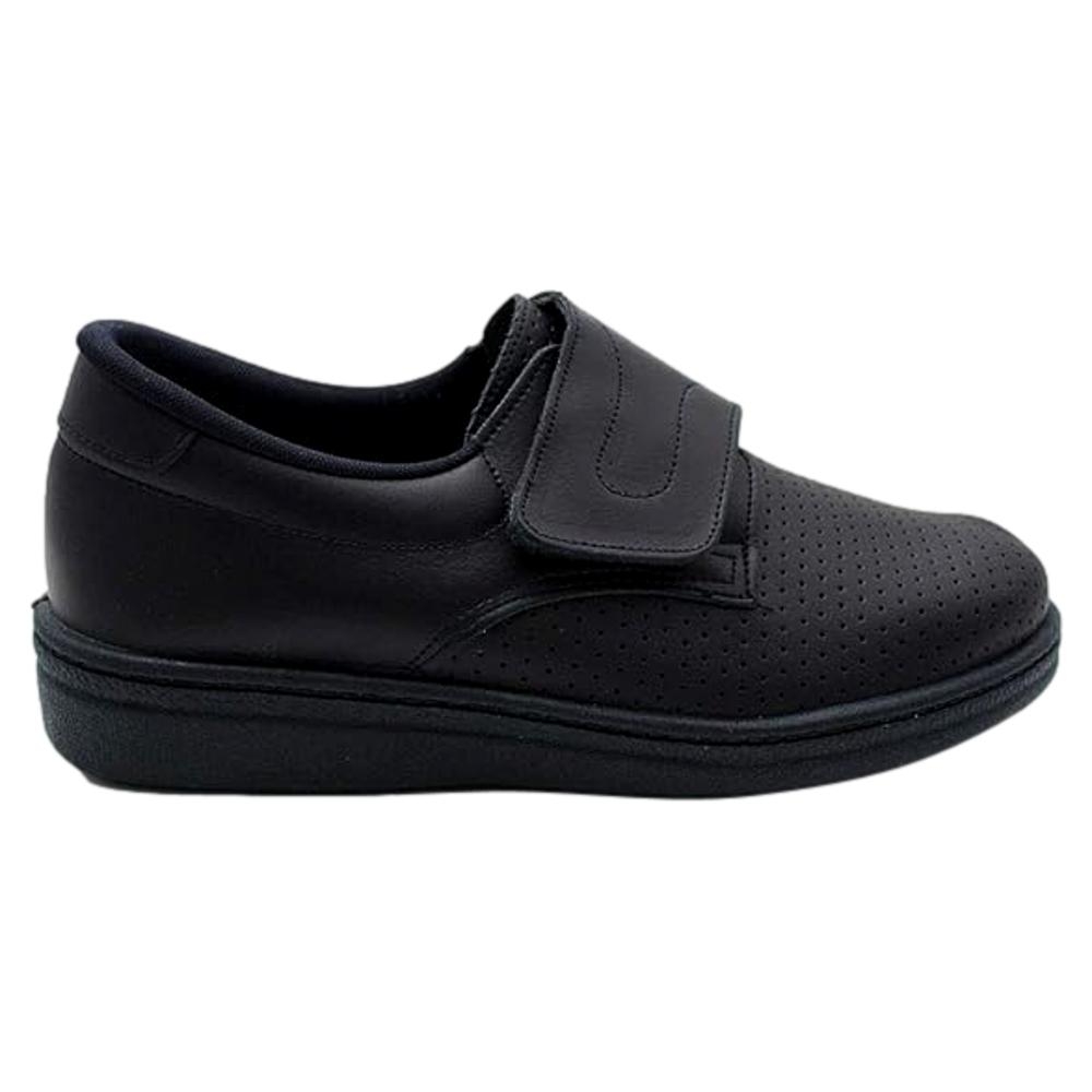 FABRICADO EN ESPAÑA. Zapato de piel con cierre de velcro. Piso de goma y plantilla extraible.
