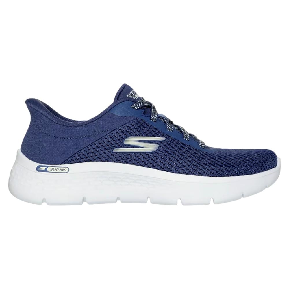 Experimenta la comodidad y la amortiguación de las Skechers Hands Free Slip-in®: GO WALK Flex™ – Carla. Diseñadas con nuestra exclusiva Heel Pillow™, estas zapatillas deportivas veganas sin cordones cuentan con una parte superior de malla termofusible con cordones elásticos fijos, una plantilla acolchada Skechers Air-Cooled Memory Foam® y una entresuela ligera y acolchada ULTRA GO® con Flex Pillars™ para mayor sujeción.
