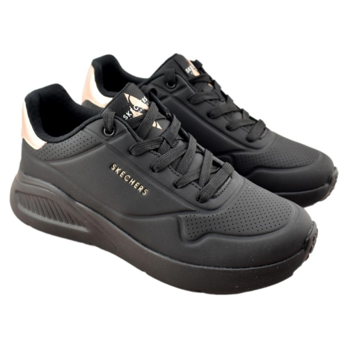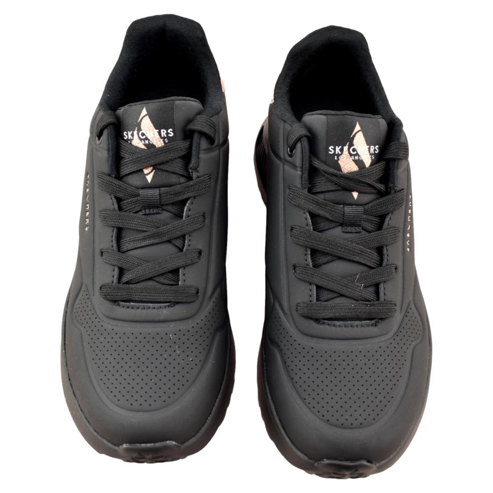 Zapatillas Skechers 177291 Uno Lite para mujer con detalles metálicos. Características: zapatillas informales con cierre de cordones, suela de 2 cm, suela de goma, parte superior sintética Durabuck, forro textil y plantilla acolchada.