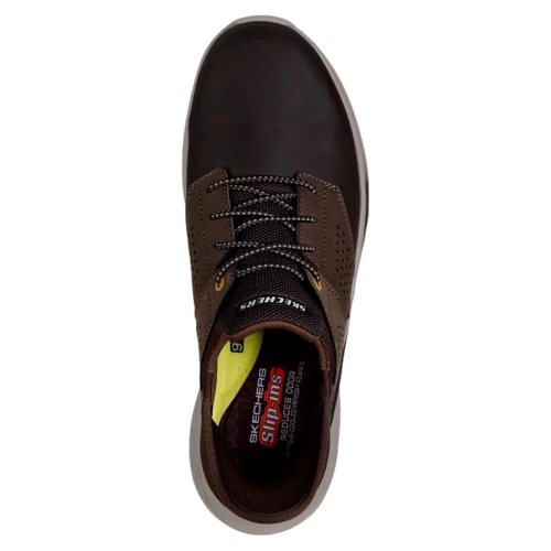Camina cómodamente con las zapatillas Skechers Slip-Ins® Relaxed Fit®: Slade - Macklin. Este modelo con cordones elásticos, diseñado con nuestra exclusiva Heel Pillow™, presenta una parte superior de piel, malla y material sintético, una plantilla Skechers Air-Cooled Memory Foam® con carbón y soporte en el arco plantar Skechers Goga Mat Arch™.