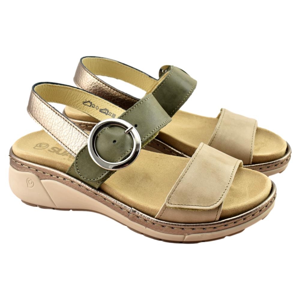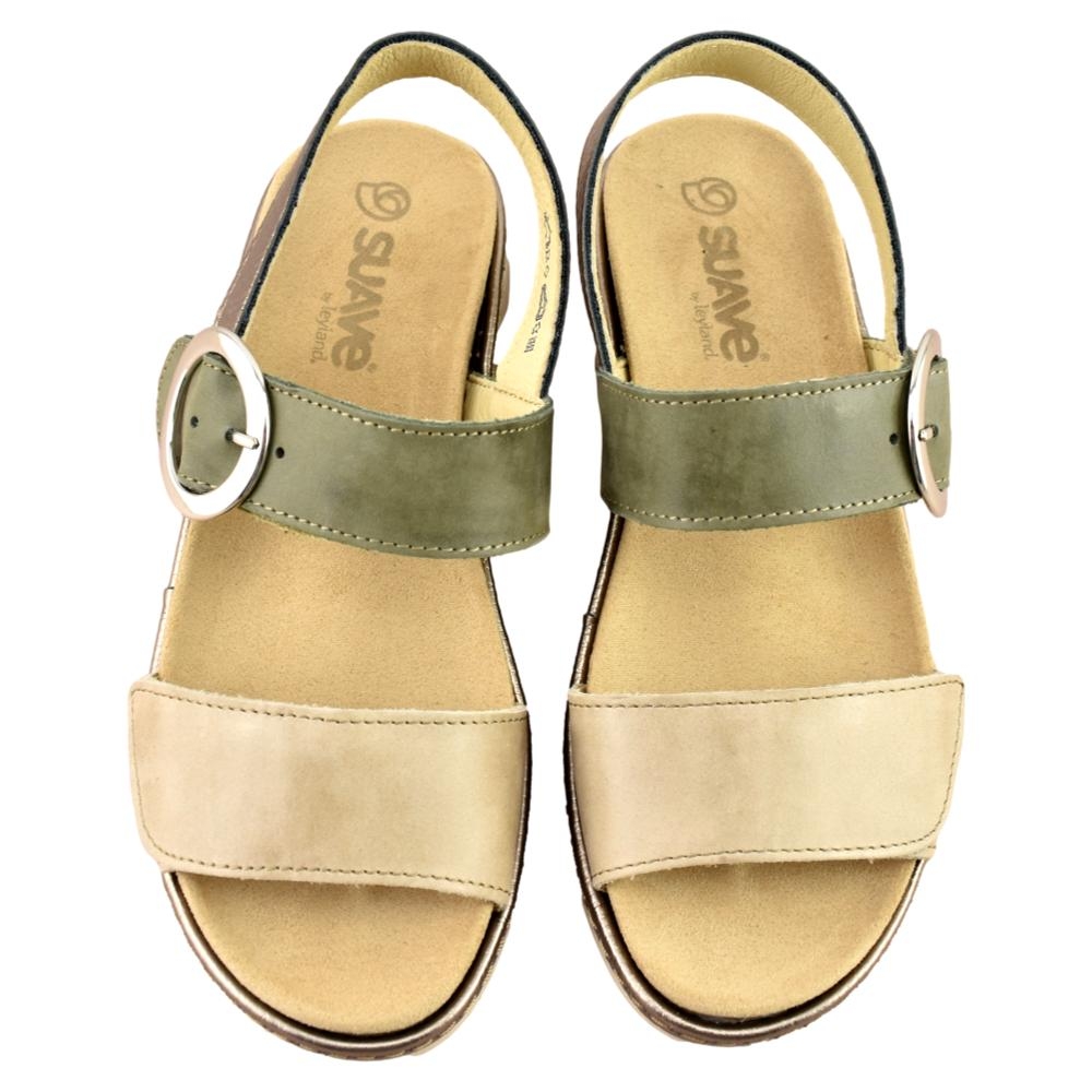 Sandalia muy cómoda de la marca Suave, que nos presenta un piso flexible y ligero. El aumento de la base de apoyo aporta más confort y estabilidad en cada pisada. Incorpora plantilla acolchada extraíble y tira  con cierre adhesivo.