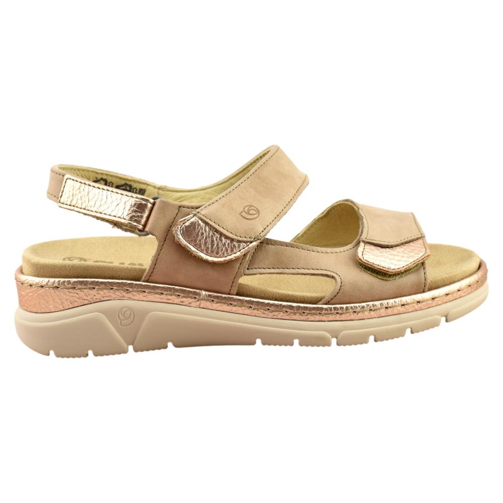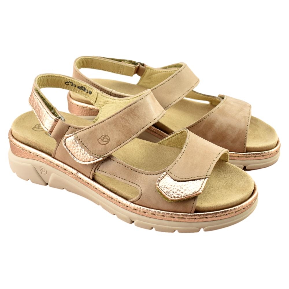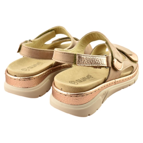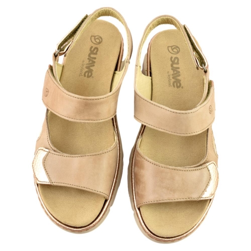 Sandalia muy cómoda de la marca Suave, que nos presenta un piso más ancho, flexible y ligero. El aumento de la base de apoyo aporta más confort y estabilidad en cada pisada. Incorpora plantilla acolchada extraíble y tira trasera con cierre adhesivo.
