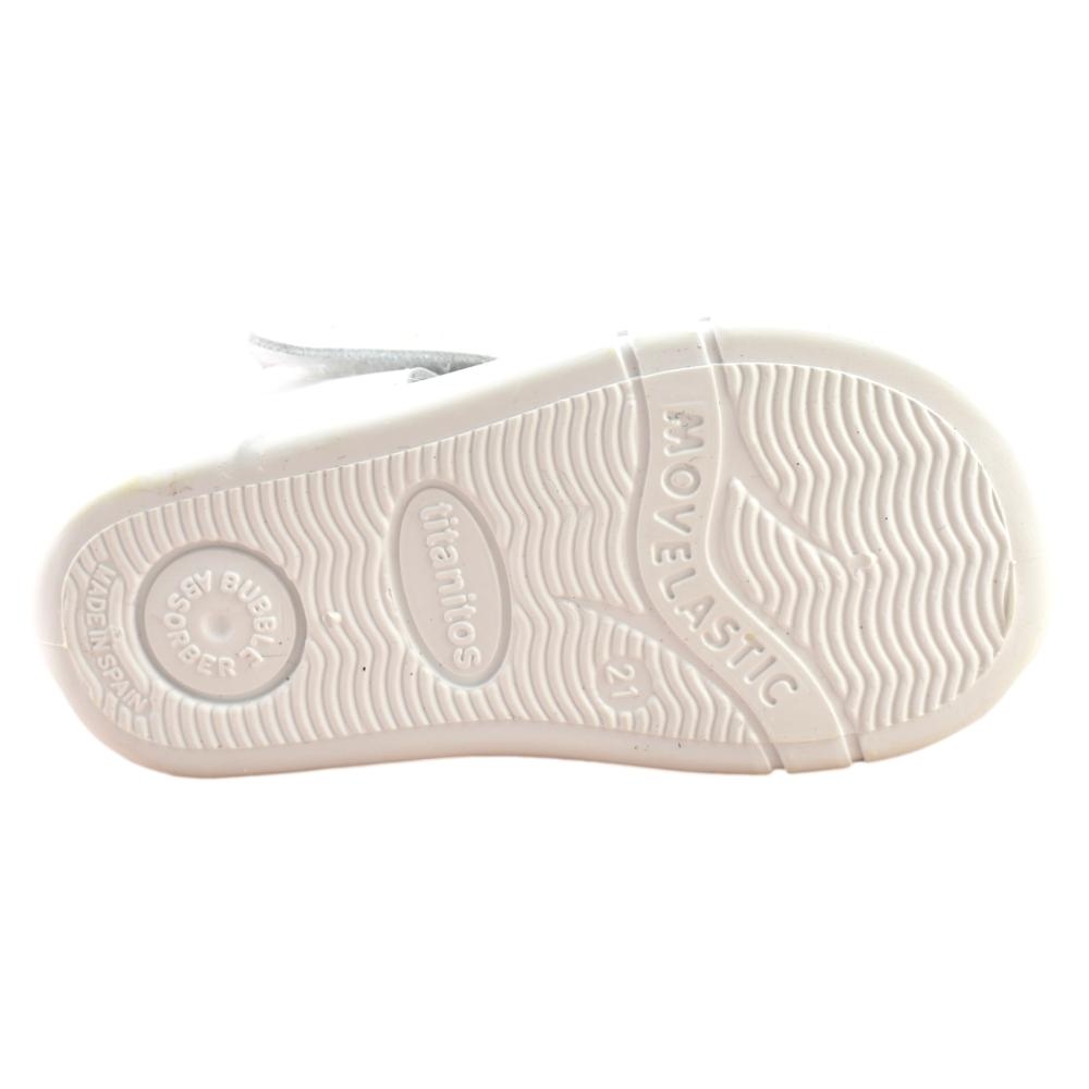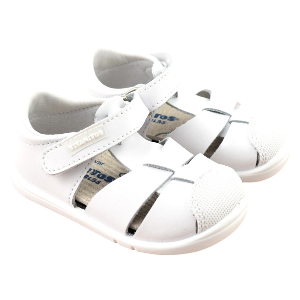 FABRICADO EN ESPAÑA. Calzado que respeta el libre movimiento del pie. Sanadalia en piel lavable con cierre ajustable en velcro y talón cubierto para un mejor agarre, empeine  con puntera cerrada. Estas sandalias  llenarán de alegría los pies de tu peque. Su comodidad extra otorgada por su plantilla ergonómica, antibacteriana y se combina con la tecnología Bubble Absorber y Movelastic, que amortiza el impacto y facilita el ángulo de flexión del pie. Realizados en piel sin tóxicos fabricado con los mejores materiales. El interior es en piel, facilitando la transpiración, y la suela es de goma, que resiste los continuos impactos que el correr y el juego provocan en el calzado. Muy fácil limpieza y mantenimiento. Los zapatos Titanitos están manufacturados por completo en España, con una fabricación que se ajusta a los controles de calidad y seguridad europeos, garantizando un calzado cómodo, resistente y apto para todos los niños.
