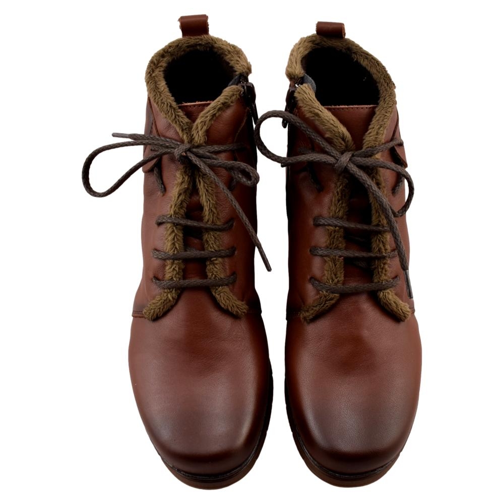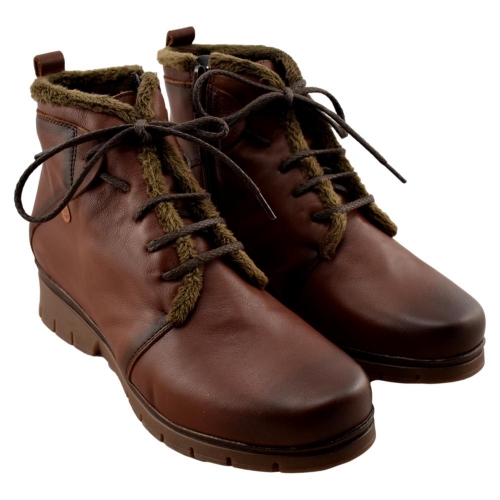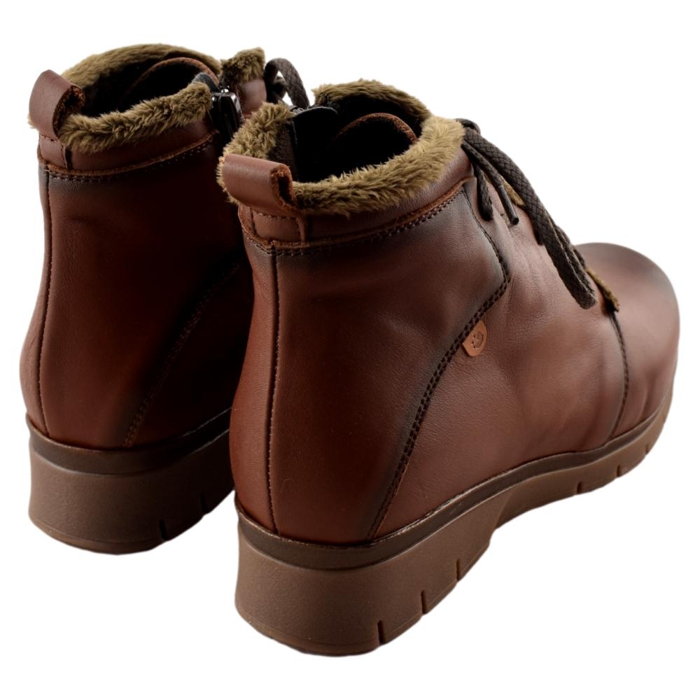FABRICADO EN ESPAÑA. Botas de piel con cremallera lateral y cordones. Incorpora plantilla acolchada extraíble. Piso de goma flexible con cuña de 4cm.