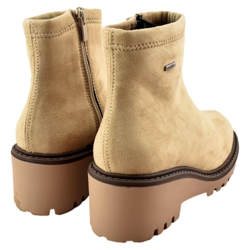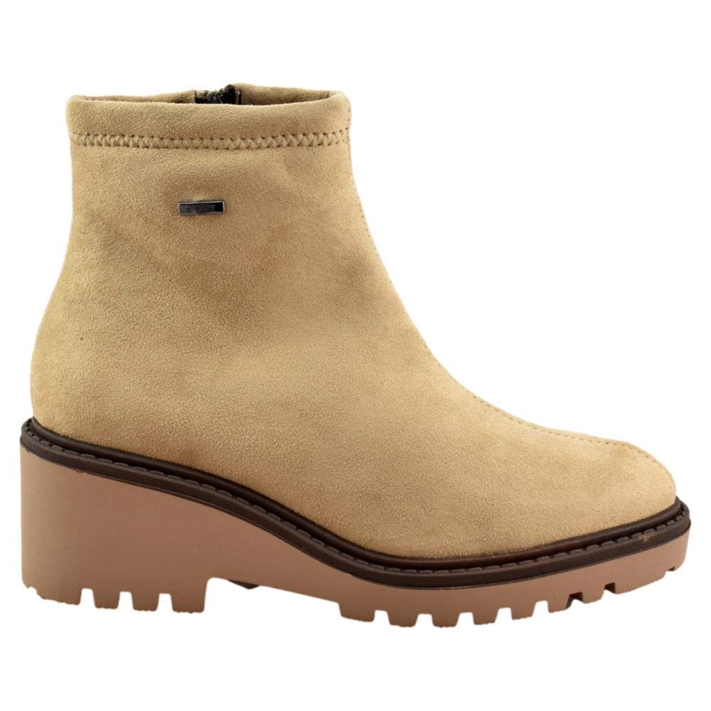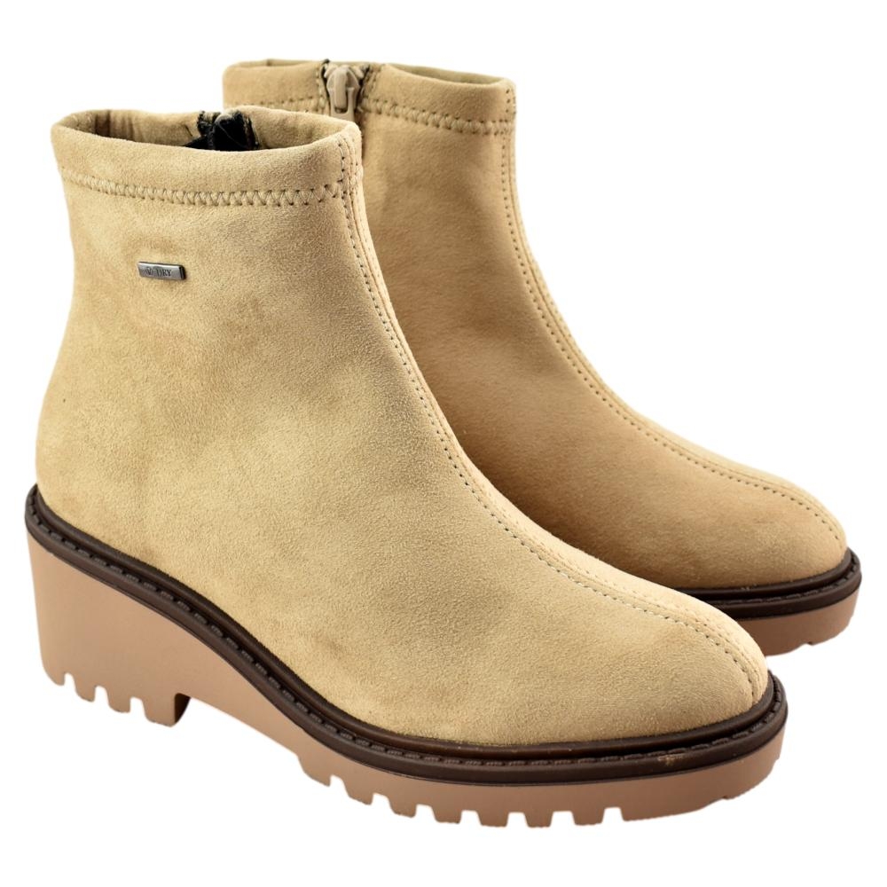 Botín impermeable para mujer con suela tipo cuña y plantilla acolchada extraíble. Cierre con cremallera en el interior. Incorpora una membrana hidrofuga y transpirable que dificulta la entrada de agua en los pies, y al mismo tiempo facilita la evaporación de la humedad, manteniéndolos secos y evitando malos olores.