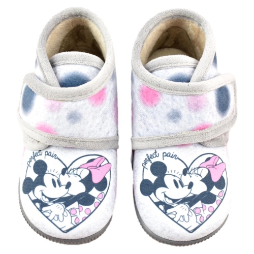 FABRICADO EN ESPAÑA. Botas de paño con forro muy suave y cálido. Divertido diseño de Mickey y Minnie. Cierre de velcro. Piso de goma antideslizante y flexible.