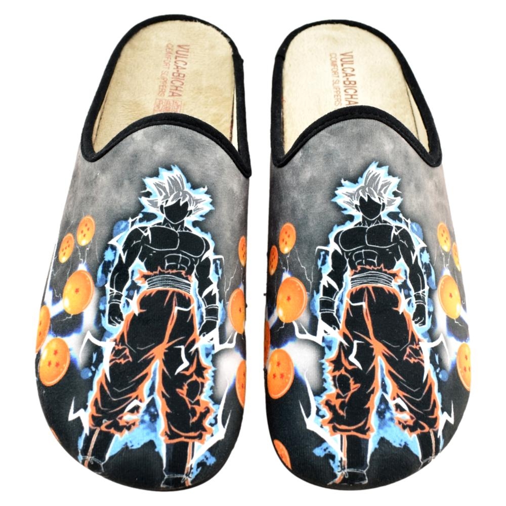 FABRICADO EN ESPAÑA. Zapatillas de casa con motivo de Son Goku. Fabricadas en paño muy suave y cálido. Plantilla acolchada extraíble. Piso de goma muy flexible.