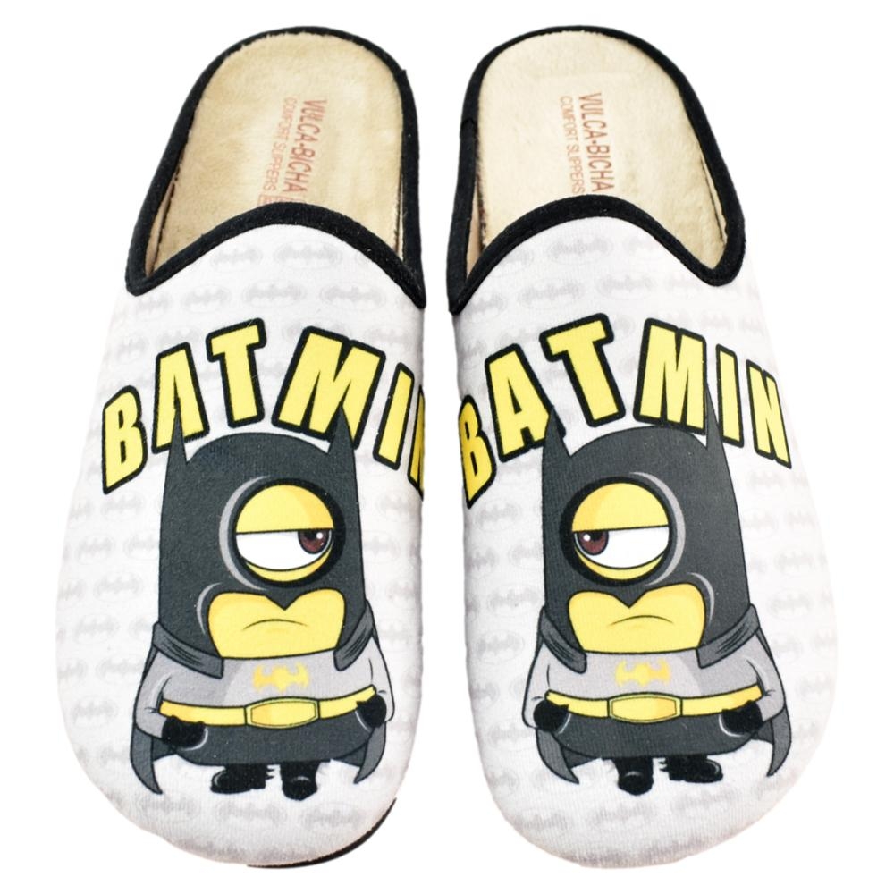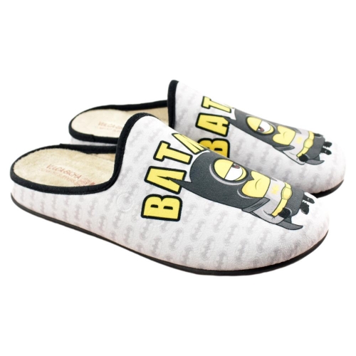 FABRICADO EN ESPAÑA. Divertidas zapatillas de  Minion disfrazado de Batman. Tejido suave y cálido . Incorpora plantilla acolchada y extraíble. Piso de goma antideslizante.