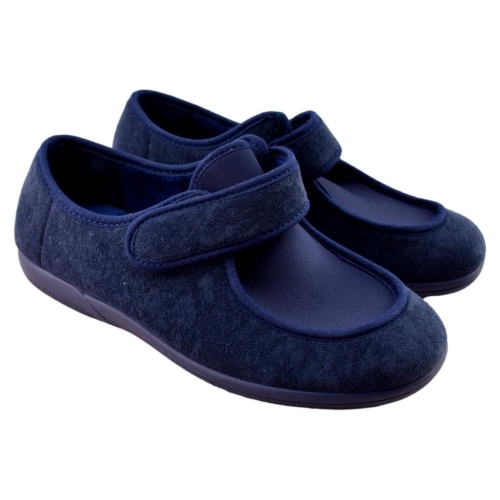FABRICADO EN ESPAÑA. Zapatillas de ancho especial con la pala de licra totalmente adaptable y cierre de velcro.