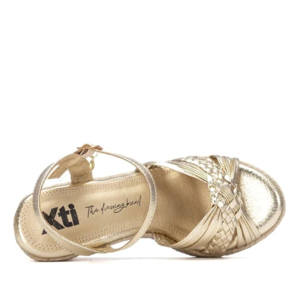 Sandalia de mujer, de la marca Xti. Fabricada en suave material, esta sandalia destaca por su diseño de pala con tiras cruzadas y trenzadas, que aporta un toque artesanal y actual. Cuenta con pulsera al tobillo con cierre mediante hebilla, que garantiza una sujeción cómoda y segura. Incorpora una cuña alta con plataforma, que estiliza sin renunciar al confort. Ideal para lucir en los días de verano con estilo y comodidad. Este modelo ha obtenido el certificado vegano por la organización mundial PETA (Organización de los derechos de los animales).